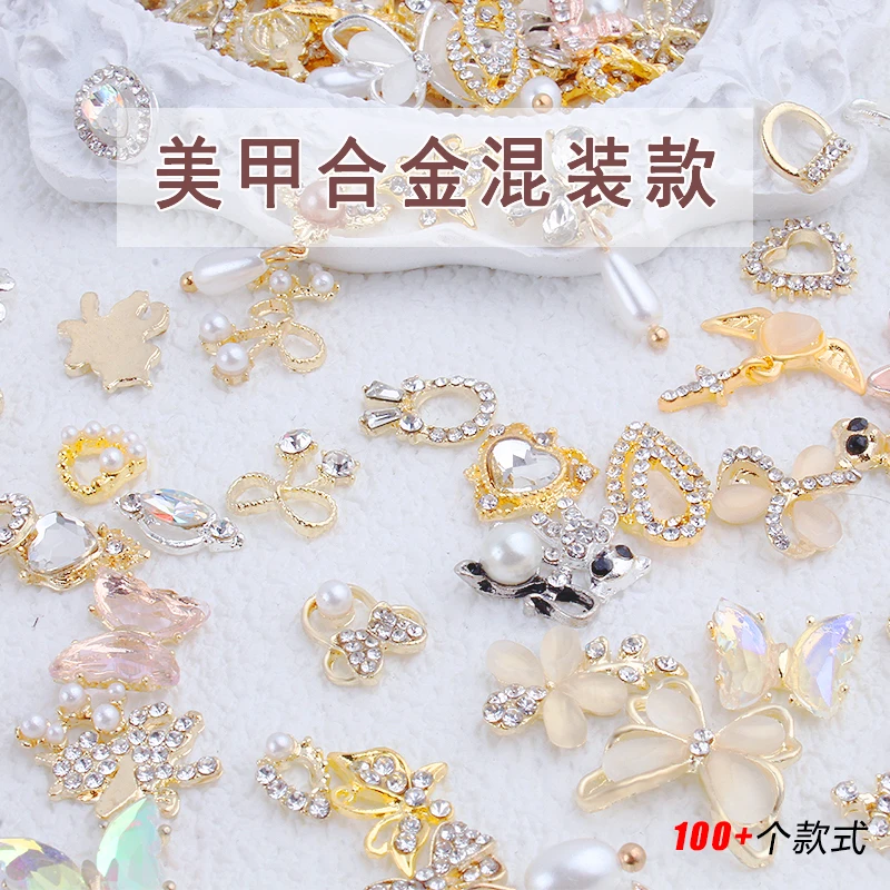50pcs 3D Mixed Style Luxury Nail Art Charms (Heart Bowknot) Pendant Alloy Nail Jewelry Gold/Silver Metal Manicure Accessories &*&